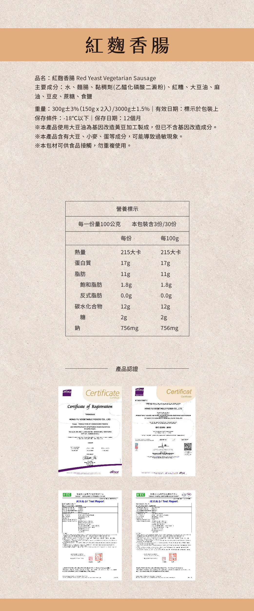 嚴選非基因改造大豆蛋白,搭配紅麴發酵香氣與台式辛香調味,Q彈多汁、鹹香開胃,素食也能品嚐道地台味香腸的靈魂滋味。