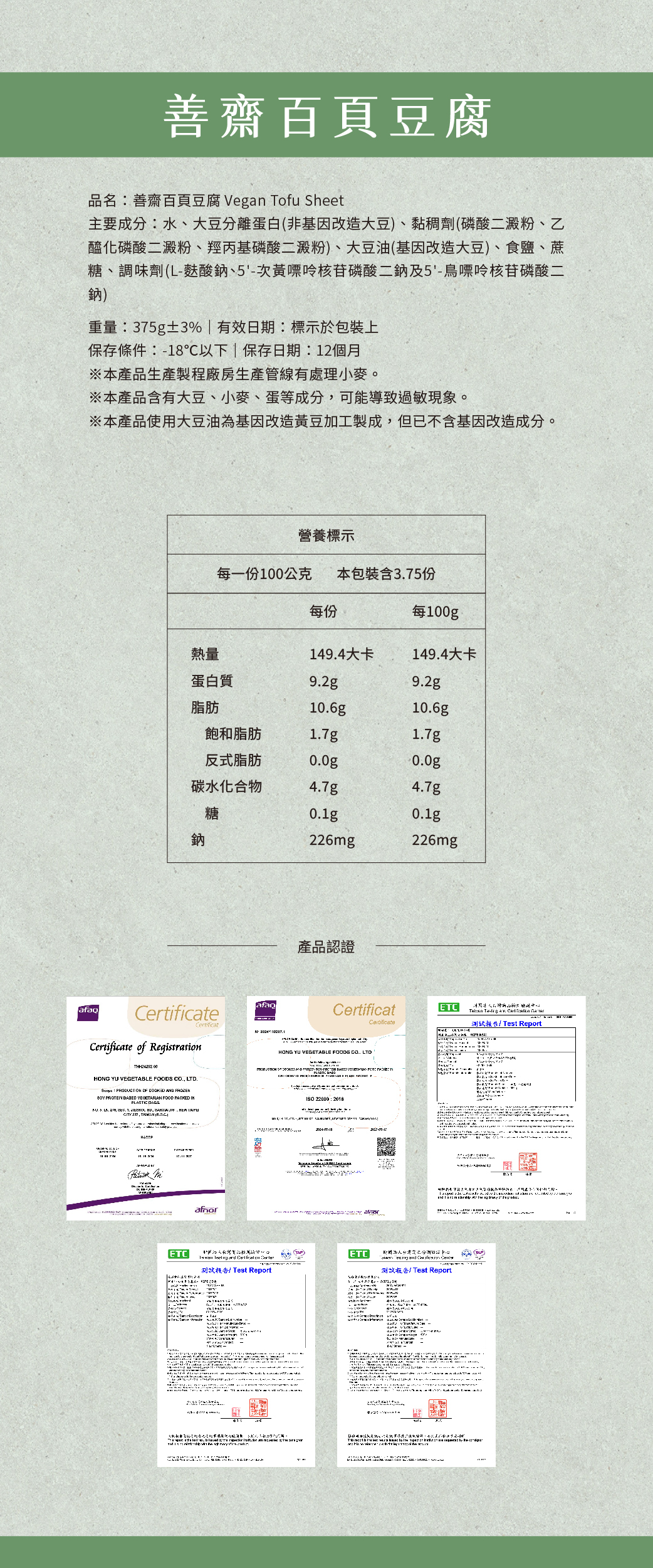 ■ 選用優質非基改大豆製成,經細緻研磨、凝製與壓模程序,成就柔滑而富彈性的層層柔嫩,豆香在口中緩緩綻放!