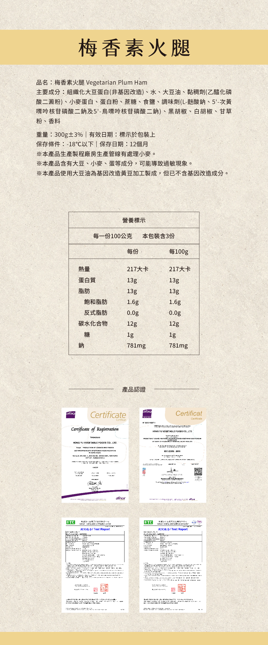 梅香素火腿(蛋素)— 鹹香濃厚,火腿經典